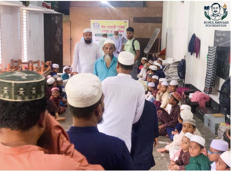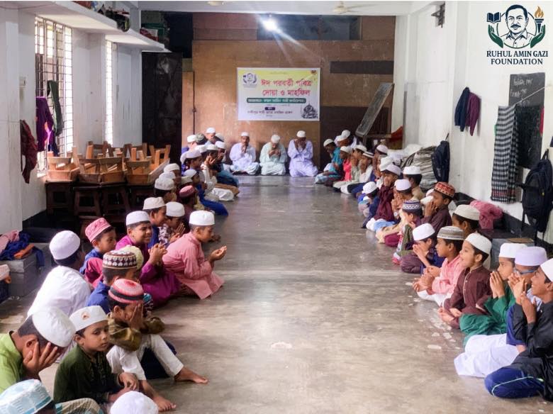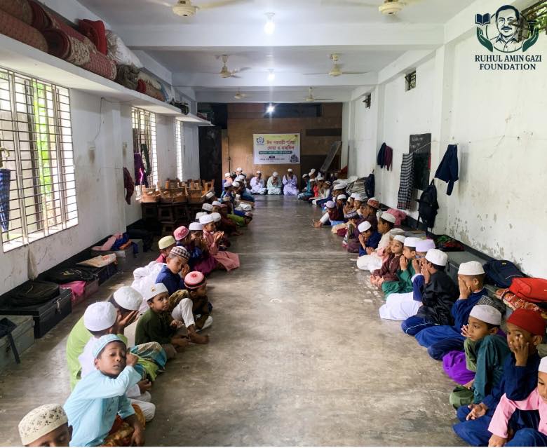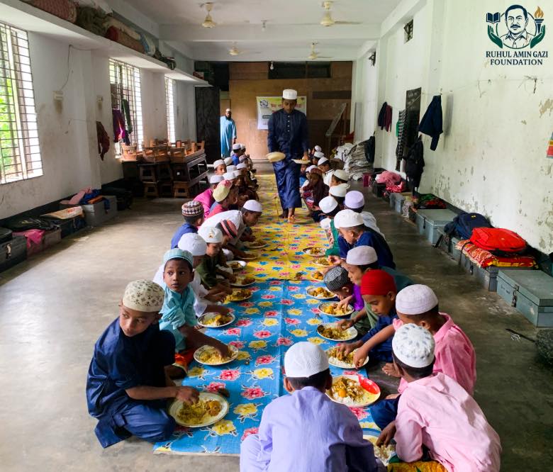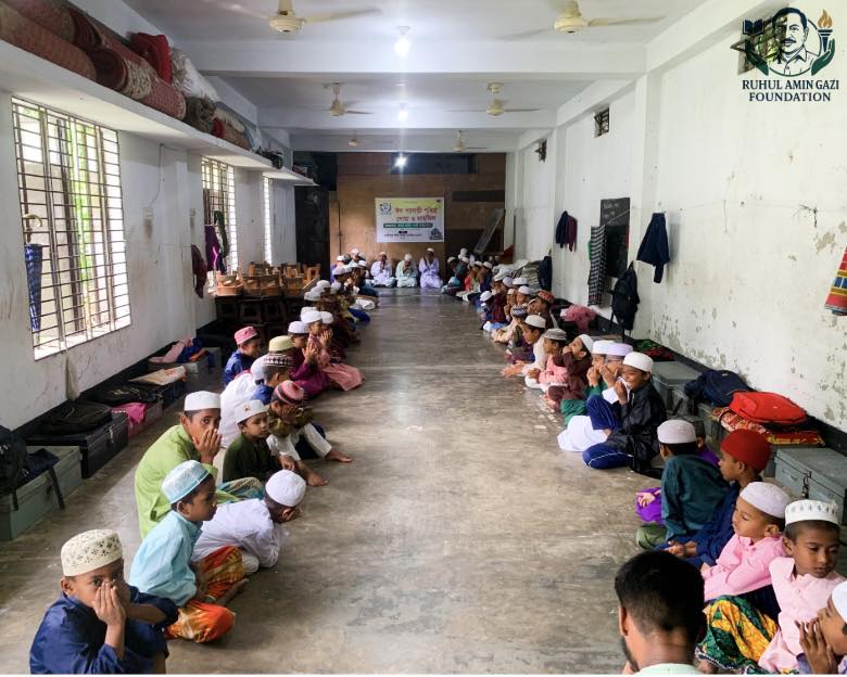 ১৭.০৬.২০২৫ তারিখে আমরা রুহুল আমিন গাজীর স্মরণে একটি দোয়া মাহফিলের আয়োজন করি এবং প্রায় ১৫০ জন মাদ্রাসার শিক্ষার্থীর (যাদের বেশিরভাগই এতিম) সঙ্গে একসাথে আহার করি। সেবা ও সহানুভূতি ভাগাভাগি করার এই সুযোগের জন্য আমরা কৃতজ্ঞ।